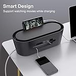 Scientific design: This cable organizer box adopts an upgraded multi-row hole design which can store different thickness wires while improve the heat dissipation speed, prevent the internal temperature of the box from being too high to cause a fire. The cover has space to accommodate mobile phones or a tablet so that you can playing mobile phones while charging.