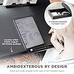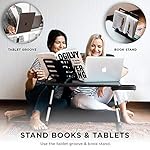 LAP DESK WORKSTATION TABLE + STORAGE, BOOK STAND - Built-in iPad stand groove & side drawer for storing pens & cables! Included Book stand with fold out legs.