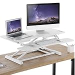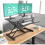 COSYHOMELONDON sit stand computer stand height adjustable office station, quick sit to stand desk riser for dual monitors Black or white