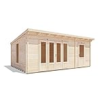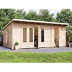 Dunster House Log Cabin Double Glazing Garden Office Integrated Side Room BundleDuck 5.9mx3.8m