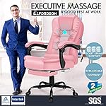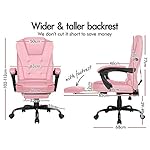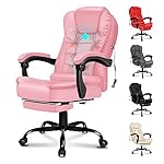 ELFORDSON Massage Office Chair, Pink Computer Desk Chair with Footrest, Ergonomic Executive Chair for Home Office, PU…