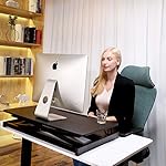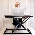 【VERTICAL ADJUSTNENT】- Our Standing Desk Converter rises vertically from 12.5-52cm (4.9″-20.5″). The vertical lift and X-shaped steel frame ensure extremely high stability and a smaller desktop footprint.