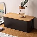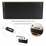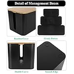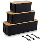 EVADOW Set of 3 Cable Management Box with Bamboo Lid, Black Wire Core Cable Tidy Box Conceal and Hide Cable Wire…