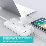 6AC + 4USB Combination: This extension plug has 6 AC sockets and 4 smart USB ports; Single USB slot delivers an optimized charge up to 2.4A(total USB output 3.4A) with our smart and reliable power technology.4 USB slots and 1.8M extension cord can meet most requirements, whether use at home or office as a desktop charging station.