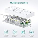 Space Saving & Wall Mountable: Wide-spaced sockets can accommodate large plug adapters without interference.4 mounting holes on the back of the power strip offer you an extra option to permanently install it onto the wall if you are tired of the limited floor or desk space.