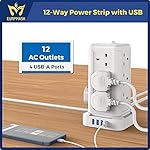 🔰【16-in-1 Charging Tower】The tower extension lead is equipped with 12 AC outlets (3250W/13A) and 4 smart USB-A ports (5V/3.1A max/per port) for charging multiple devices such as smartphone, tablet, laptop, TV, projector and lamp. Compatible with voltage rates from 220–250V.