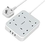Extension Lead with 3 USB Slots, TESSAN 13A 4 Way Multi Plug Extension Cable with 2M Cord, Wall Mounted Power Strip…