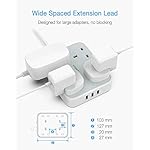Widely Space Socket: A sufficiently wide space socket is suitable for large outlet plugs, and will not block each other. 4 way plugs and 3 USB slots in all. It can charge total 7 devices simultaneously and satisfying your daily needs. Note: Max output power up to 3250W (250V / 13A)