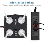【Super Wide Spaced Outlets】4 AC sockets on 4 different corner of the panel offers extreme wide space between each AC outlet on the USB-C extension lead for big plugs, while the compact square design frees up more valuable space at home, in a hotel, or on a cruise ship.