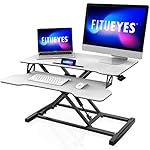 FITUEYES Standing Desk Converter Sit Stand Desk Converter With Keyboard Tray Height Adjustable Standing Desk (White 32in…