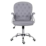 Grey Desk Chair,Leather Office Chair with Armrest Ergonomic Mid Back Computer Chair with Rocking Function Adjustable…
