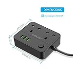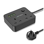 JSVER Extension Lead with 3 USB Slots (15.5W) 2 Outlet Power Strip Surge Protected Power Socket with Switch 2M Cable for…