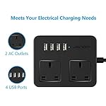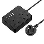 JSVER Extension Lead with 4 USB Slots (5V/3.1A) 2 Outlet Power Strip Surge Protected Power Socket with 1.5M Cable for…