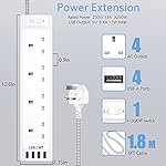 LENCENT Extension Lead with USB Slots, 4 Way Outlets Power Strip with 4 USB Ports, Multi Power Plug Extension with 1.8M…
