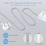 【Upgraded Tangle-Free Braided Cord】The 1.8-meter hard-wearing and durable braided cable is designed to remain tangle-free, whether in your bag or in your living room. Built-in 1.25m㎡ overstriking pure copper, it has better current carrying capacity (13A).