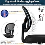 ✅【ERGONOMIC DESIGN】: Curved backrest can perfectly line up with human body line, ergonomically designed mesh back swivel desk chair featuring a well cushioned seat and supportive breathable mesh back, the results are a well-fitting chair that helps to dramatically release spinal pressure.