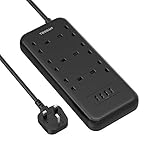 Surge Protected Extension Lead with 4 USB Slots, TESSAN 6 Way Black Multi Plug Extension Cord with 2M Cable, 6 Gang Wall…
