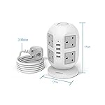Tower Extension Lead 3M Cable, TESSAN 8 Way Surge Protected Multi Plug with 4 USB Ports, Extension Cord Double Switched…