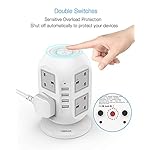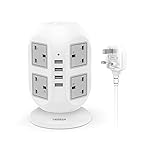 Space-Saving Design: The purpose of vertical tower design for the extension lead is to help people has a better organized desktop, floor and etc. It will make your living spaces look much neater and having a good mood when you are using multiple electronic devices