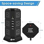 When looking for an ideal plug extension to deliver power to devices using AC and DC simultaneously, Te-Rich 12-Socket Extension Lead is the device. Besides being a power strip, it also acts as surge protector hence keeping all your appliances safe from surges and spikes. Further, the socket extension combines 2-in-1 functionality, whereby, it possesses AC outputs for TVs, computers, laptops and other high-power devices, while intelligent USB charging ports keeps your phones, Kindles, and tablets out of power hunger. The outlets are spaced evenly on the four sizes of the tower itself, with enough vertical and horizontal space to accommodate oversized charging plugs, and two separate finger-friendly switches on top cut the socket or usb power if you’re closing up and want to save electricity.