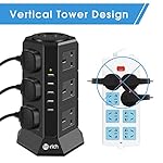 Tower Extension Lead, Te-Rich 12 Gang Surge Protector Multi Plug Power Strip Electric Charging Station with 5 Smart USB…