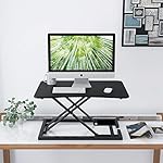 [Smooth Lift & Height Adjustment]: Gas spring system allows you to adjust your position in seconds easily and comfortably. Control your desk converter with easy-using handles. Hold the handles on the right side and raise or lower your standing desk converter within seconds.